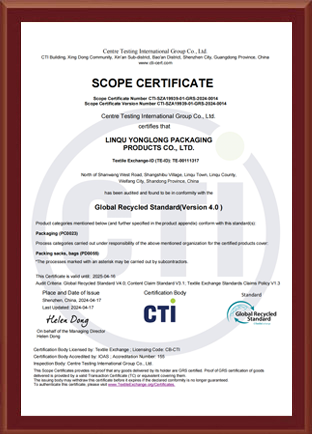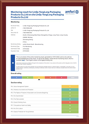 如今,永隆已发展成为一家拥有专业产品研发团队、质量监督团队和全套先进塑料包装制品设备的生产型企业,并通过了ISO14001和BRC, GRS等质量和环境认证,和人权SEDEX, BSCI工厂审核。